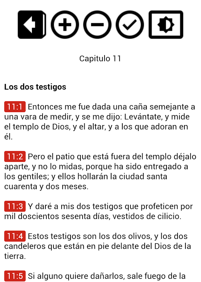 -The Bible brings Controls for better reading as Zoom and color contrast for easier reading (Check the instructions within the application)