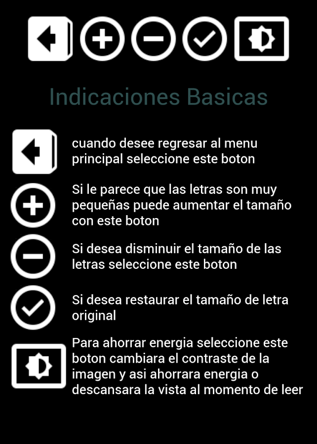 -La Biblia trae Controles para su mejor lectura como Zoom y contraste de colores para su mejor lectura (Revise las instrucciones dentro de la aplicacion)