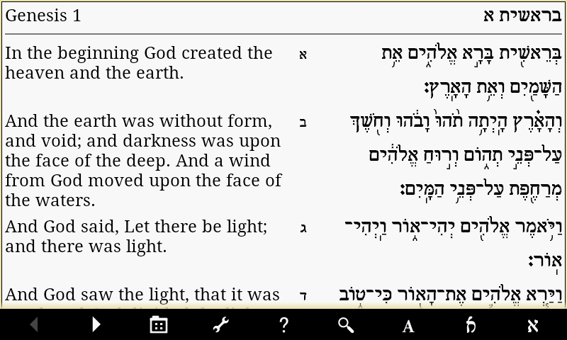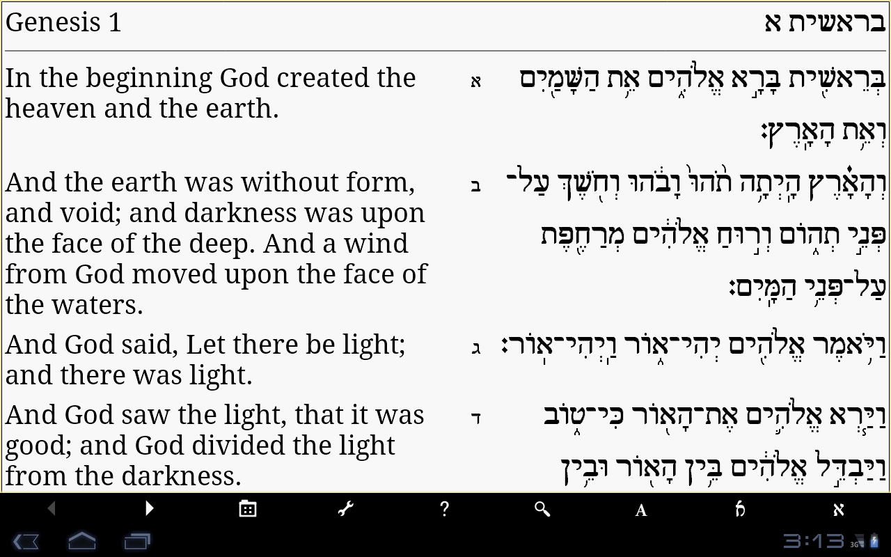 For users running earlier versions of Android, Tanach Bible requires no special Hebrew support. It’s built into the app!