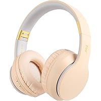 Bluetooth Headphones Over Ear, Comfortable Wireless Headphones, Rechargeable HiFi Stereo Headset, w/Wired Mode, CVC6.0 Microphone for Cellphone Online Class, Home Office, PC (Apricot)