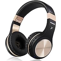Bluetooth Headphones, Riwbox XBT-80 Folding Stereo Wireless Bluetooth Headphones Over Ear with Microphone and Volume Control, Wireless and Wired Headset for PC/Cell Phones/TV/ipad (Black Gold)