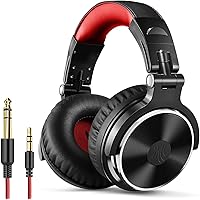 OneOdio Over Ear Headphone, Wired Bass Headsets with 50mm Driver, Foldable Lightweight Headphones with Shareport and Mic for Recording Monitoring Podcast Guitar PC TV - (Red)