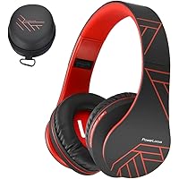 PowerLocus Bluetooth Over-Ear Headphones, Wireless Stereo Foldable Headphones Wireless and Wired Headsets with Built-in Mic, Micro SD/TF, FM for iPhone/Samsung/iPad/PC (Black/Red)